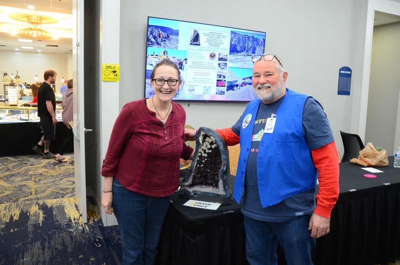 CONGRATULATIONS to Amanda G. who helped the Bluegrass Gem and Mineral Club close out our annual Gem and Mineral Show at the Clarion Hotel and Conference Center this weekend. She was the winner of our Grand Prize and was so excited when we called. This is Russ B. our club president officially awarding her the Amethyst Cathedral. Thank you to all of you who attended and helped us support the Gem and Mineral community here in Lexington, Kentucky. We will post some more pictures in the next few days.
