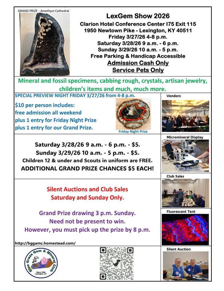 The Bluegrass Gem and Mineral Show was a great success and we appreciate our vendors, volunteers and of course the public who visited us.